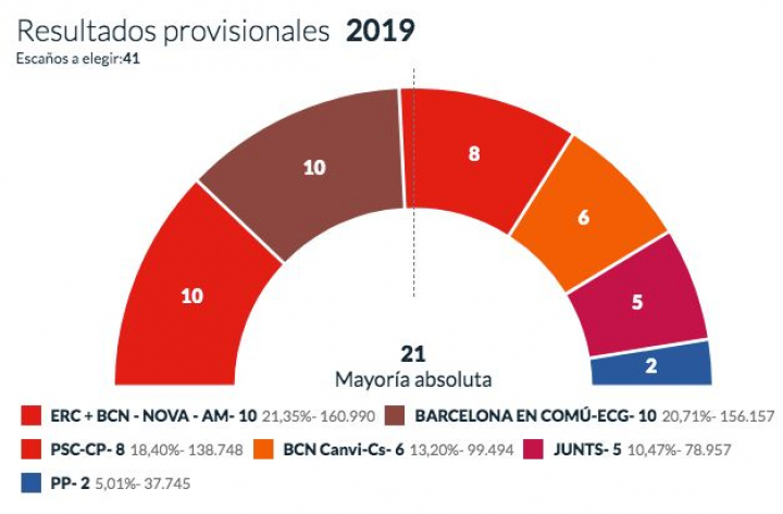 Con esos resultados, es difícil augurar quien podrá gobernar si Ada Colau, de Barcelona en Comú, o Ernest Maragall, de ERC y con quienes pactarán para llegar a los 21 votos a favor de una de esas dos opciones.