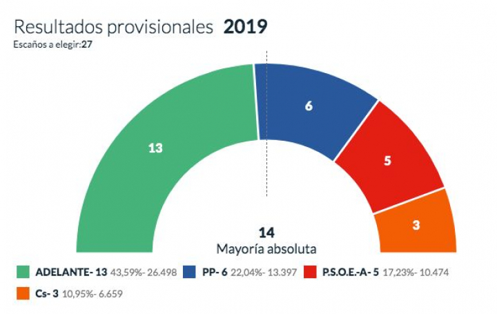 El PP ha perdido dos ediles y ahora tiene ocho, los mismos que ha ganado Vox, mientras que Ciudadanos mantiene los seis que tenía.