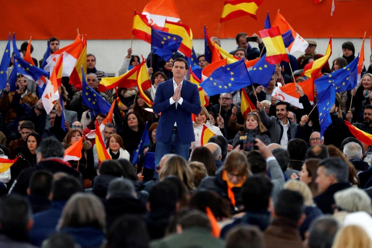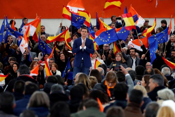 Ciudadanos ha desvelado su lema de campaña en un acto en la localidad madrileña de Las Rozas, en el que participa el presidente del partido junto a la portavoz nacional, Inés Arrimadas, y los candidatos al Congreso por Madrid Marcos de Quintos, Sara Giménez y Edmundo Bal.
