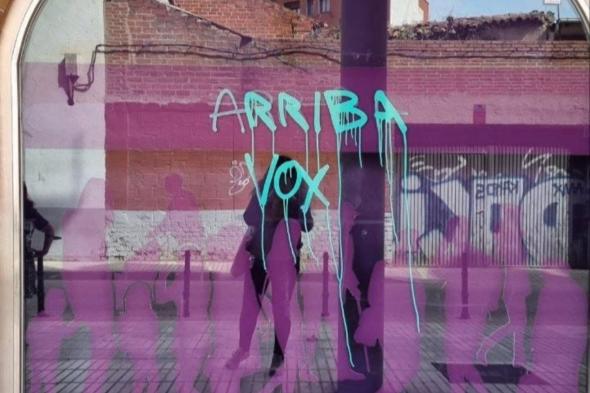 Vandalizan la fachada de la sede de Podemos en Fuenlabrada con pintadas de apoyo a Vox