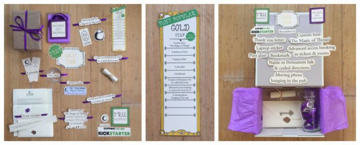 Entre los incentivos limitados está la posibilidad de recibir una obra de arte numerada de la diseñadora de The Cauldron, crear un "cóctel mágico", alquilar el establecimiento o conseguir entradas para la apertura o para las fiestas proyectadas para Halloween, Navidad o Nochevieja. Todos los contribuyentes, aunque sean extranjeros, recibirán sus recompensas al mismo tiempo, y los gastos de envío son gratuitos.