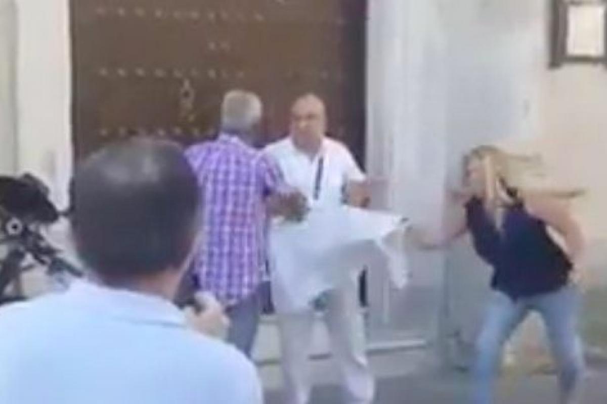 Sin embargo, en el momento en el que se disponía a mostrar el letrero, un hombre se acercó por detrás y se la arrancó ante el aplauso de los presentes.