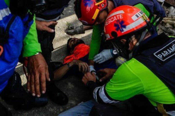 Personal médico auxilia a un manifestante herido durante las manifestaciones del lunes en Venezuela.EFE