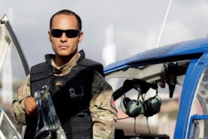 Óscar Pérez posa para la prensa en un acto de su unidad policial que tuvo lugar en Caracas en marzo de 2015.Christian Veron / REUTERS