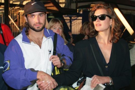 Una poderosa pareja de los noventa: Brooke Shields y Andre Agassi. Aquí estrechándose las manos, ese clásico gesto que tiene entre sí la gente que se quiere (1994).