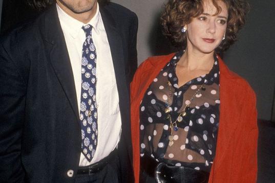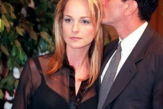 Esa época en la que Helen Hunt (y no solo ella) era una gran fan de las blusas transparentes. Por su cara parece que no tanto de los besos en la cabeza de su entonces marido, Hank Azaria. (1996)