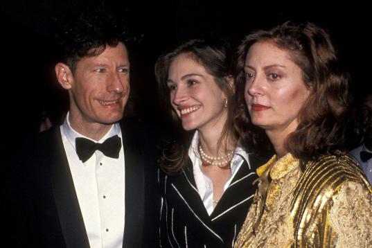 Julia Roberts y su primer marido, Lyle Lovett, posan con una claramente aburridísima Susan Sarandon. (1993)