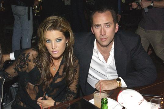 Nicolas Cage intentando enseñarle a su segunda esposa, Lisa Marie Presley, el arte de arquear las cejas. (2001)