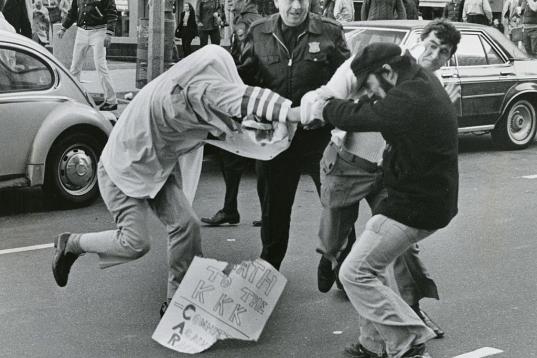 Algo que enfada más a los que le rodean. "¡Me da igual de dónde sea, señor! ¡Me da igual de dónde sea!", le espeta una mujer. "Estaba yo al lado y no le ha empujado en ningún momento", dice el joven que graba la escena.