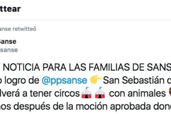 “GRAN NOTICIA PARA LAS FAMILIAS DE SANSE. Nuevo logro de @ppsanse San Sebastián de los Reyes volverá a tener circo con animales cuatro años después de la moción aprobada donde éstos fueron prohibidos con el único voto en contra de @ppsanse”, ha escrito la cuenta oficial en Twitter.