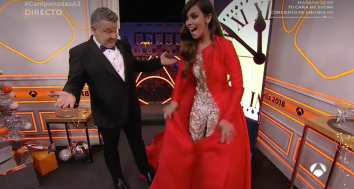 La presentadora, colaboradora de Zapeando en LaSexta, dio las uvas en Antena3 acompañada del popular cocinero Alberto Chicote.