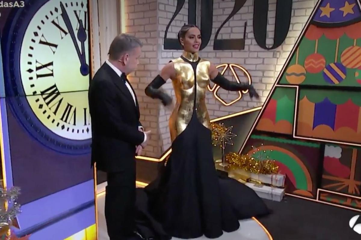 La colaboradora de Zapeando y El Hormiguero fue la presentadora de las Campanadas de Antena 3 junto al cocinero Alberto Chicote (Pesadilla en la Cocina, LaSexta).