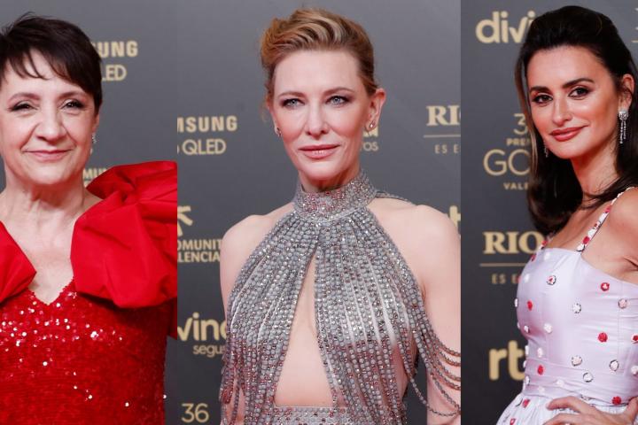 Muy próximas han posado ante las cámaras dos de las nominadas a Mejor actriz, Petra Martínez y Blanca Portillo. La primera ha elegido un traje de Atelier Tresele y la protagonista de Maixabel un vestido con mangas abullonadas y lentejuelas de Redondo Brand. Portillo, al igual que Icíar Bollaín, ha posado junto a Maixabel Lasa.