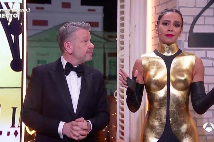 A la tradición que han creado de jugar al misterio con el diseño, con la que el año pasado convirtieron a Antena 3 en la primera cadena privada en liderar la emisión de las Campanadas, se suma la del marido de la presentadora, el chef Dabiz Muñoz, que cada 31 de diciembre posa probándose el vestido del año anterior.