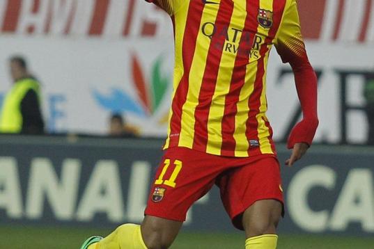El brasileño Neymar, del Barcelona, hace un gesto durante un partido de la liga contra el Atlético de Madrid, el sábado 11 de enero de 2014 (AP Foto/Gabriel Pecot)