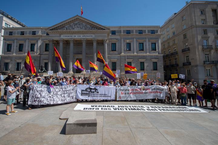 Las víctimas del franquismo piden al Gobierno una condena del golpe de Estado ante las puertas del Congreso