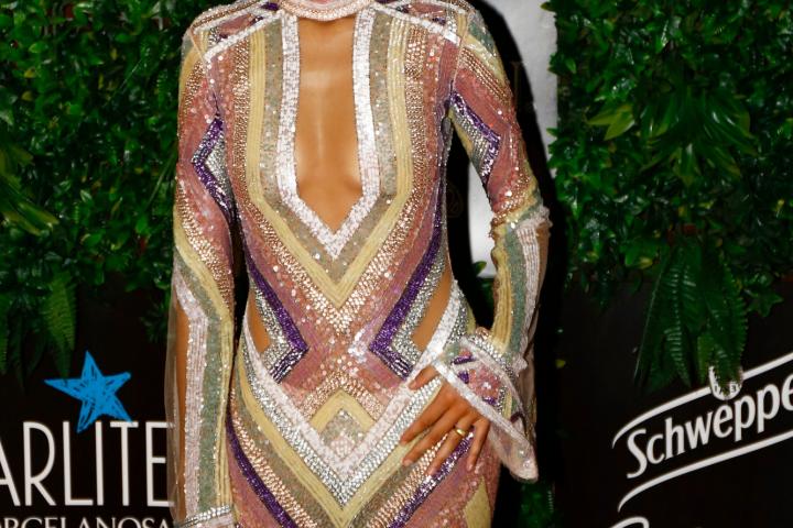 Victoria Federica, nieta del rey emérito, Juan Carlos I, acudió este domingo a la gala benéfica del Starlite, que se celebró en Marbella (Málaga), vestida con un festivo diseño de la marca Amen de colores alegres, mucho brillo, manga larga y escote pronunciado.