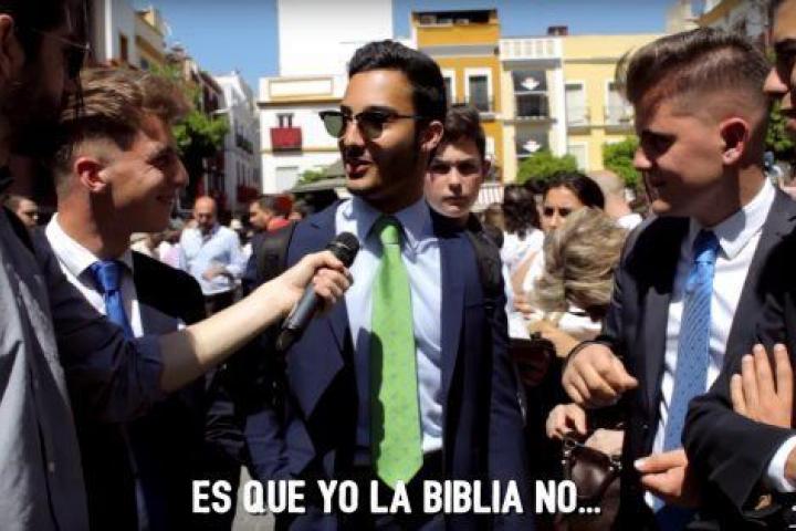 En este caso, el entrevistador preguntaba a varios grupos de jóvenes varias cuestiones sobre la Semana Santa, tales como qué es lo que sienten en estas fechas y si son católicos practicantes.