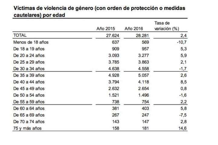 Son datos de la Estadística de Violencia Doméstica y de Género del Instituto Nacional de Estadística (INE), que analiza los datos sobre las personas que se inscribieron en 2016 en el Registro Central del Ministerio de Justicia y que recoge las víctimas con medidas cautelares o de protección.