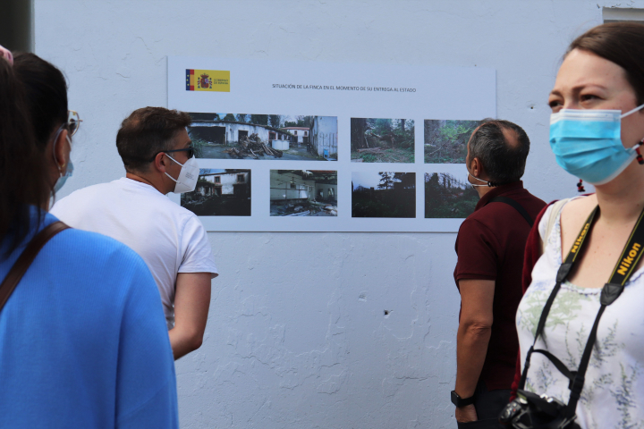 Se abre el portalón que albergó el Alcázar de Toledo antes de su destrucción en la Guerra Civil y un reguero de personas cruzan el umbral, todavía con muescas de bala visibles sobre el metal. Pero no están en Toledo. Siguen al guía de una visita que va enumerando la distintas medidas de seguridad debido al coronavirus para acabar anunciando que al final del recorrido tendrán un rato para moverse con libertad. Hace una pausa y afirma: “Bueno, lo de la libertad puede ser malinterpretado en este espacio”. No le falta razón. La comitiva acaba de entrar en la finca del pazo de Meirás, antes propiedad de la familia Franco.