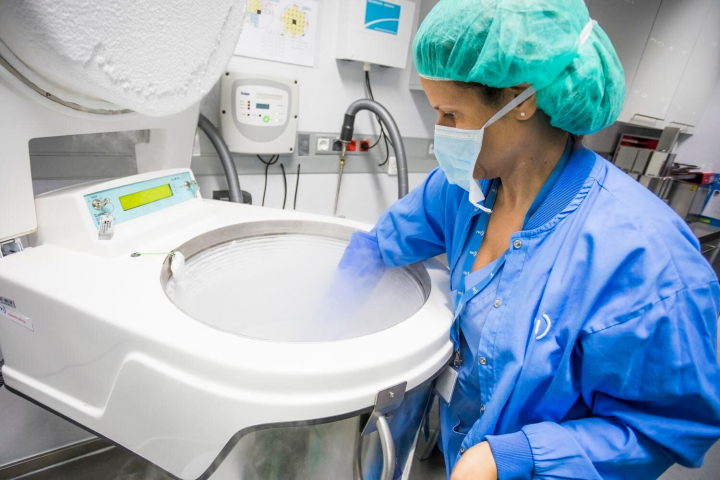 “Cuando los ovocitos nos llegan al laboratorio, los sometemos a varios pasos, seleccionamos los maduros y los introducimos en nitrógeno líquido a -196ºC. Y luego los almacenamos hasta que se necesiten”, cuenta Cobo.