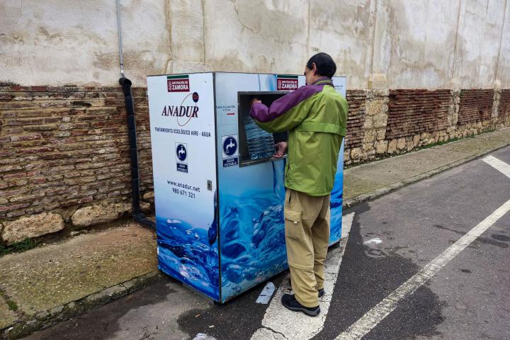 “No te queda otro remedio que acostumbrarte, aunque no deja de ser un incordio”, asegura Segundo Domínguez mientras rellena una botella. Este vecino lamenta que las potabilizadoras portátiles no dispongan de un botón de parada y echen obligatoriamente cinco litros por descarga, lo que hace que a veces se derroche un bien preciado en Toro como el agua potable.