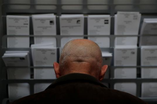Un señor prepara su voto en su sobre