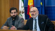 El portavoz parlamentario de Vox, Alejandro Hernández, se ha trasladado en la mañana de este miércoles al Palacio de San Telmo, sede de la Presidencia andaluza, para escenificar este acuerdo con el jefe del Ejecutivo andaluz, Juanma Moreno, y con el vicepresidente de la Junta, Juan Marín.