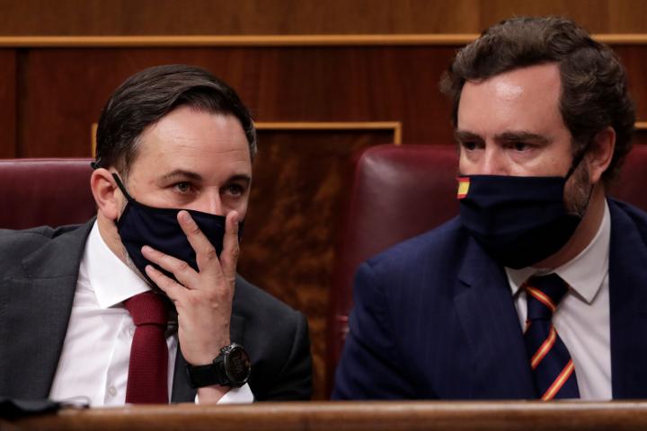 El líder de Vox, Santiago Abascal y su portavoz parlamentario Iván Espinosa de los Monteros.
