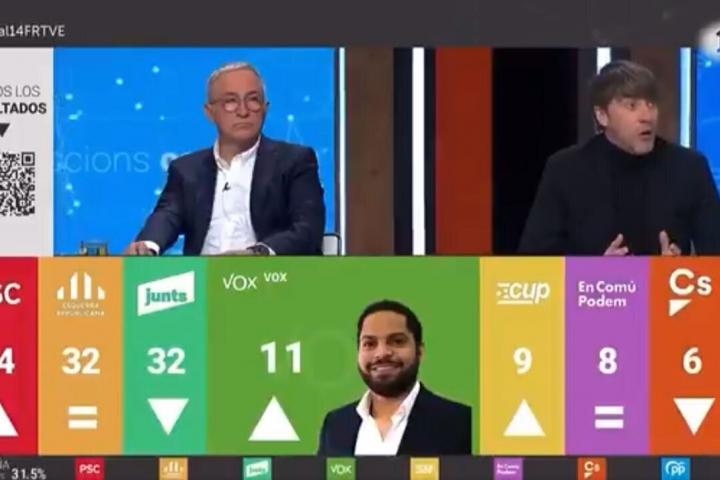 Todo ocurrió durante el programa que TVE emitió con motivo de las elecciones catalanas, que ganó el PSC empatado a escaños con ERC y en las que Vox irrumpió como cuarta fuerza con 11 diputados.