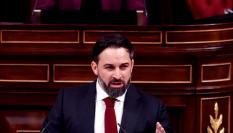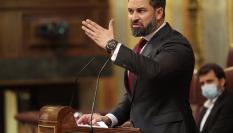 El líder de Vox, Santiago Abascal durante su intervención durante la moción de censura de su partido al gobierno de coalición.
