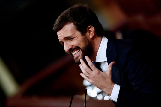 El líder del PP, Pablo Casado, aplaudido tras su intervención.