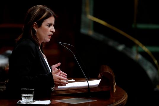 La portavoz del PSOE, Adriana Lastra, se dirige a Vox.