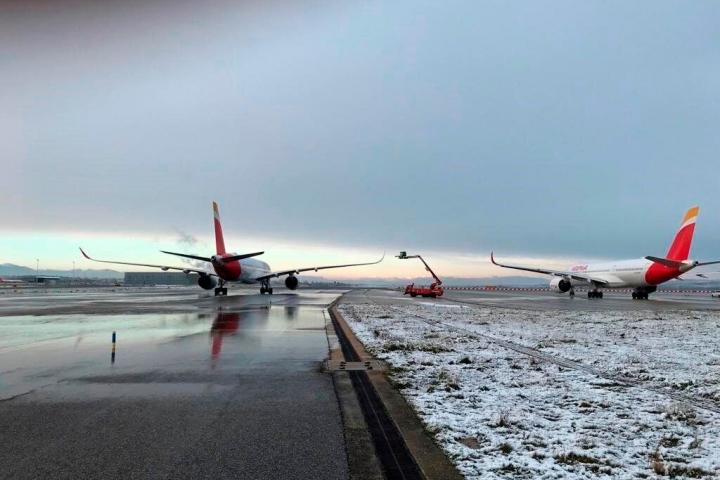 La borrasca Filomena ha obligado a cerrar el aeropuerto de Barajas en Madrid.