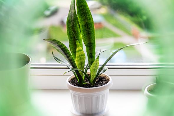Esta planta, también llamada sansevieria, es famosa por soportar condiciones extremas. Puede sorportar periodos largos de sequía.