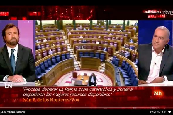 Tenso encuentro el que tuvieron este miércoles por la noche en el Canal 24 Horas el portavoz de Vox en el Congreso, Iván Espinosa de los Monteros y el periodista Xabier Fortes.