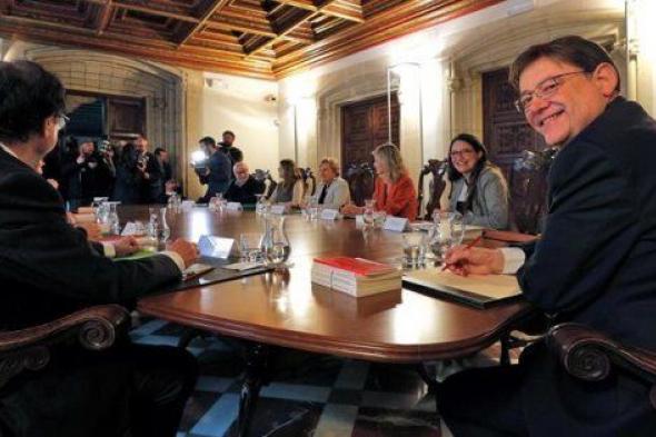 El Gobierno valenciano es una coalición conocida como Acord del Botànic formada por cinco miembros del PSPV-PSOE, incluido el president Puig, y cinco miembros de Compromís, incluida la vicepresidenta Mónica Oltra. Podemos no forma parte del Ejecutivo pero apoya desde fuera.