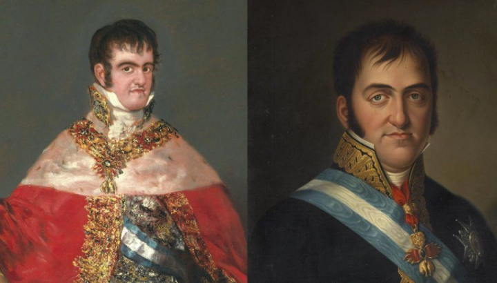 Fernando VII en un campamento de Francisco de Goya (1815) y Fernando VII de Luis de la Cruz y Ríos (1825).