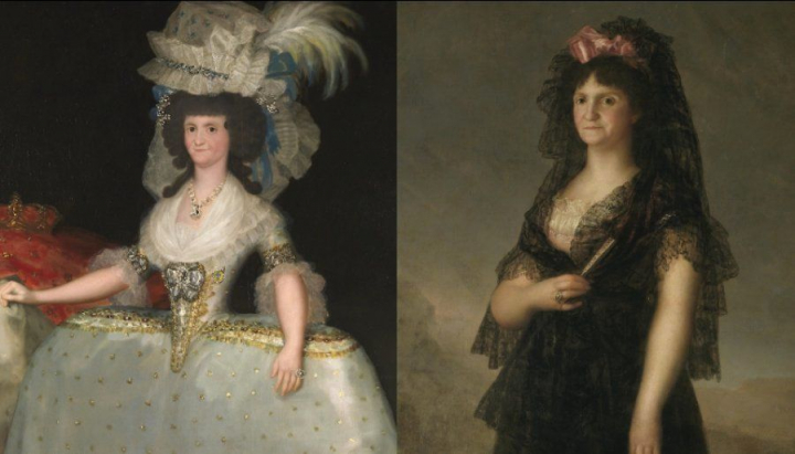 María Luisa de Parma con tontillo de Francisco de Goya (1789) y La reina María Luisa con mantilla de Francisco de Goya (1799-1800).