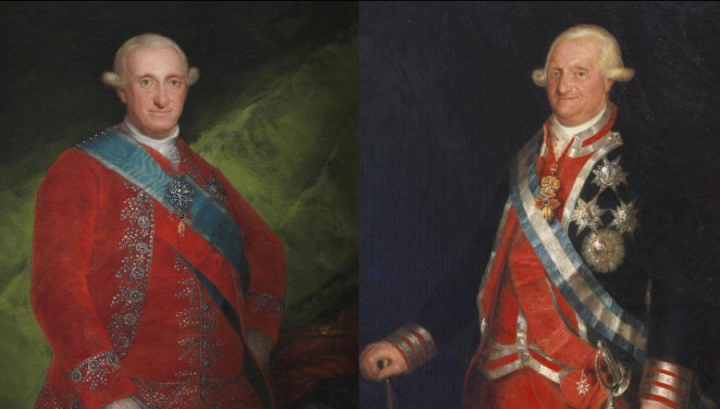 Carlos IV de Francisco de Goya (1789) y Carlos IV en uniforme de coronel de la Guardia de Corps de Agustín Esteve y Marqués (1799-1800)