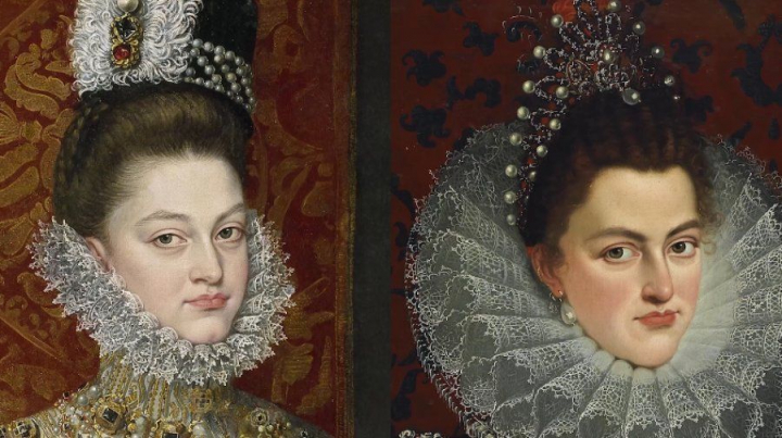 La infanta Isabel Clara Eugenia y Magdalena Ruiz de Alonso Sánchez Coello (1585-1586) y Isabel Clara Eugenia de Juan Pantoja de la Cruz (1598-1599).
