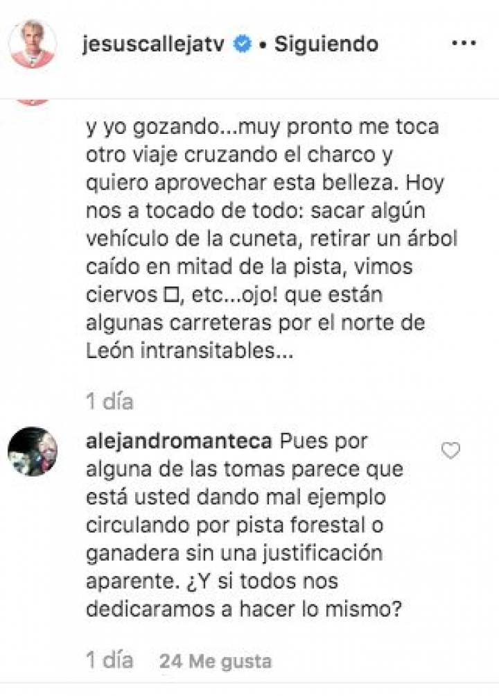 Comentario a Jesús Calleja en InstagramINSTAGRAM: JESÚS CALLEJA