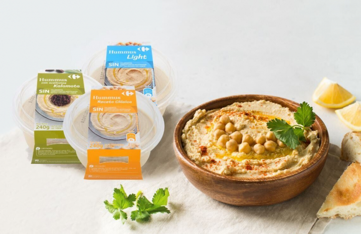 El hummus es un puré de garbanzos cuyo origen se suele situar en el antiguo Egipto y que es muy popular en los países árabes y Oriente Medio. Carrefour ha lanzado tres recetas de su hummus bajo su marca blanca: clásica, light y kalamata, que lleva aceitunas negras.