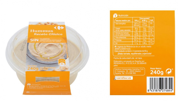 Aquí se puede ver el nombre del mismo fabricante en el hummus de Mercadona: