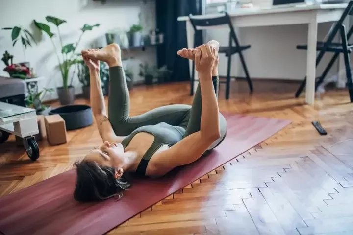 Otra forma estupenda de flexibilizar la cadera y las ingles es la postura del bebé feliz (Ananda Balasana). “Túmbate de espaldas, llévate las rodillas al pecho con las plantas mirando al techo y agarrárrate los pies o los tobillos”, explica Allen.
