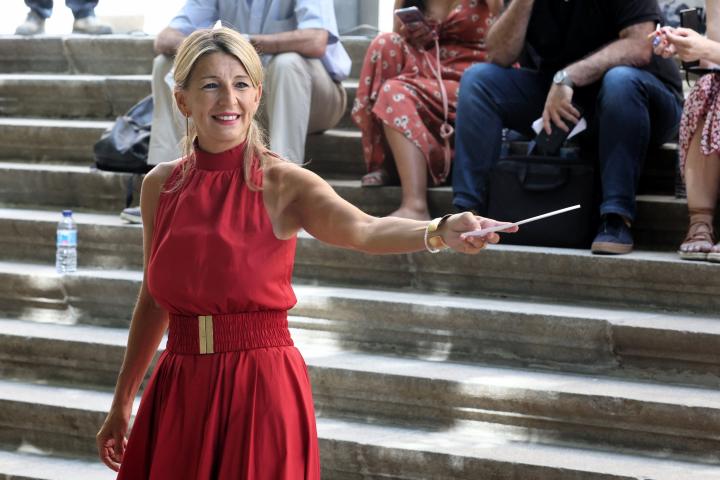 Yolanda Díaz baja unas escaleras y lo que capta un fotógrafo junto a ella acumula más de 8.000 'me gusta'