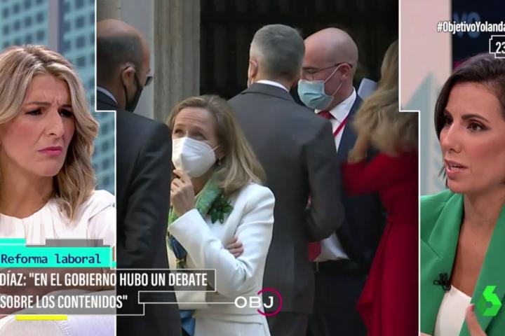La vicepresidenta segunda del Gobierno y ministra de Trabajo, Yolanda Díaz, ha acudido este miércoles al plató de El Objetivo, donde ha abordado los cambios que plantea hacer sobre la reforma laboral del Partido Popular y ha hablado sin rodeos sobre la imagen que ha dado el Gobierno durante este debate.