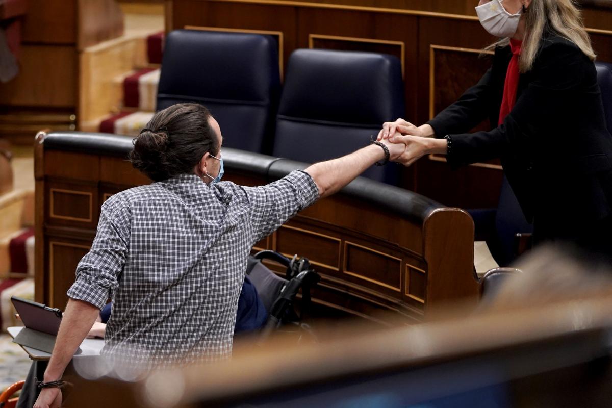 Pablo Iglesias se despide de Yolanda Díaz en su último día en el Congreso.GTRES