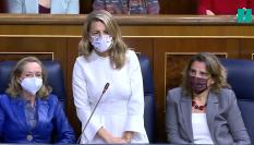“Fíjese, me ha preguntado muchos veces por los ERES” ha añadido la vicepresidenta segunda en su análisis sobre las propuestas de Vox, “porque llegan incluso ustedes a meterse en la jurisdicción social, diciéndole que tienen que limitar las causas de examen a los tribunales en algo tan importante como son, nada más y nada menos, que las causas del despido colectivo”.