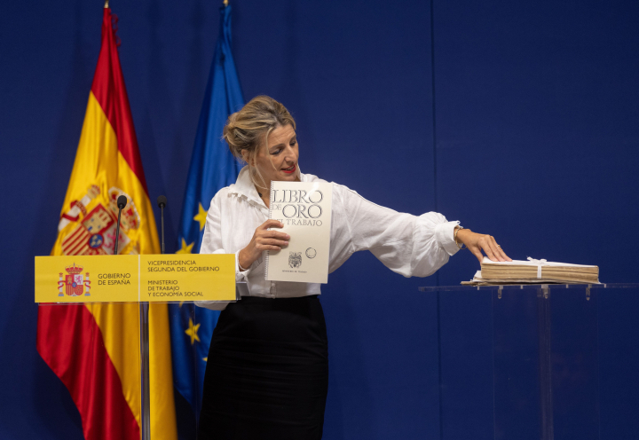 La vicepresidenta segunda, Yolanda Díaz, ha anunciado que ha retirado la medalla al mérito del trabajo a Francisco Franco y a otros nueve destacados cargos del régimen franquista, en virtud de la entrada en vigor de la Ley de Memoria Democracia.